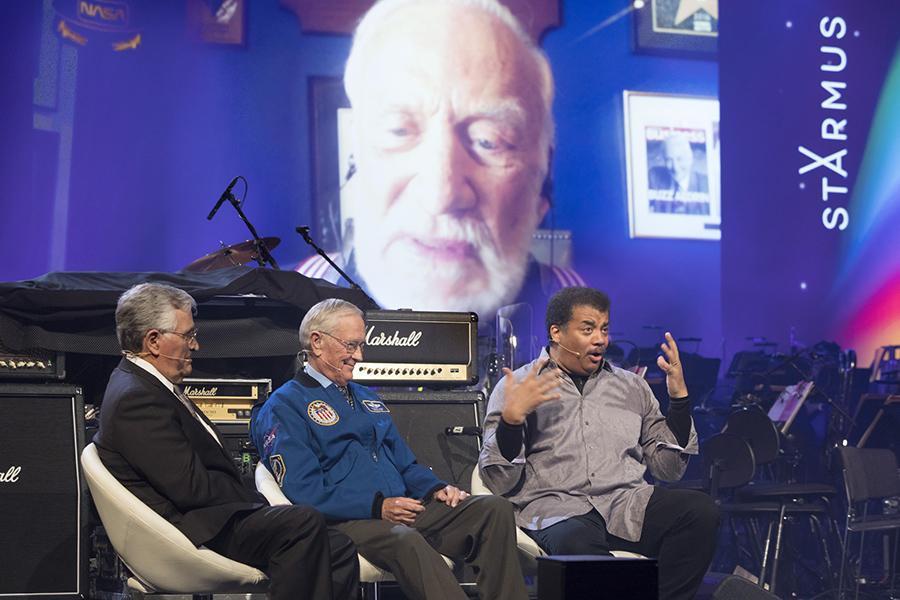 The most obvious question to ask of this historic panel was: what’s next? “In the long range, Mars is a clear objective for the humanity. Long range being this century probably,” said Schmitt. He was hopeful that the first marswalker has already been born, but as a disclaimer he noted that he has said this for the last 50 years in public speeches.