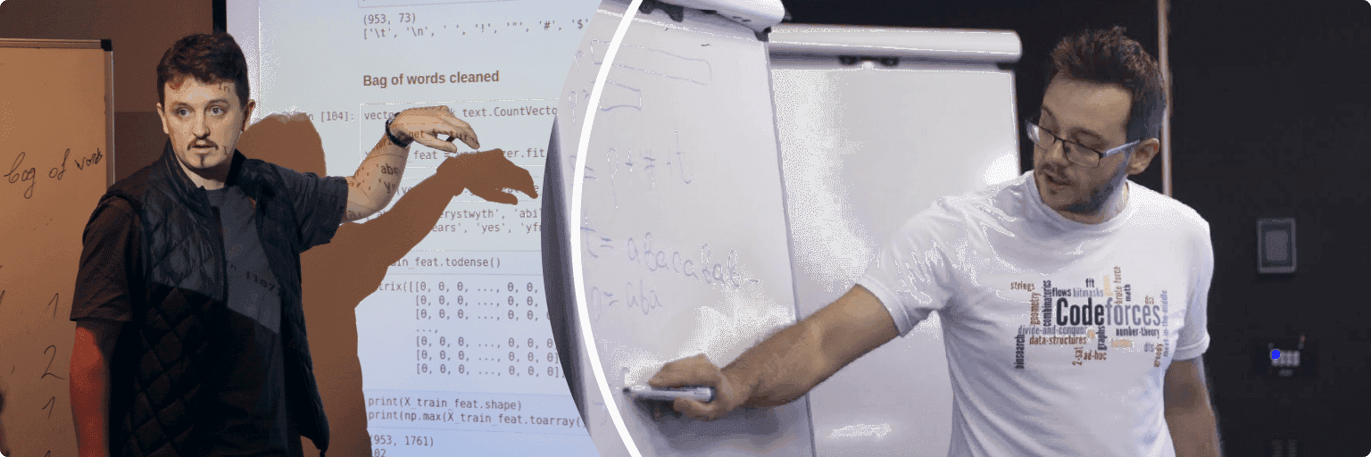 Your faculty will be familiar people like Mike Mirzayanov, Nikolay Kalinin, Kamil Debowski, Ivan Androsov, Mikhail Dvorkin, and many other competitive programmers, data scientists, and software engineers.