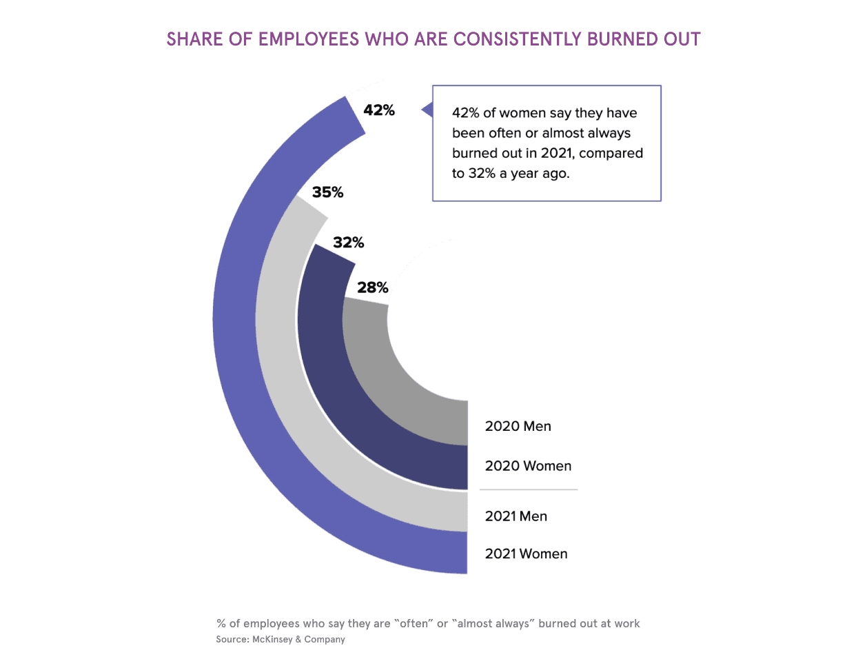 The few women that thrive make up less than 25% of the tech industry’s senior leadership roles and they earn about 10% less than their male counterparts. Even worse, according to the Deloitte study, after the pandemic, 51% of women feel less optimistic about their career prospects now than before the crisis broke out because they feel more burned out and have to deal with more micro-aggressions.