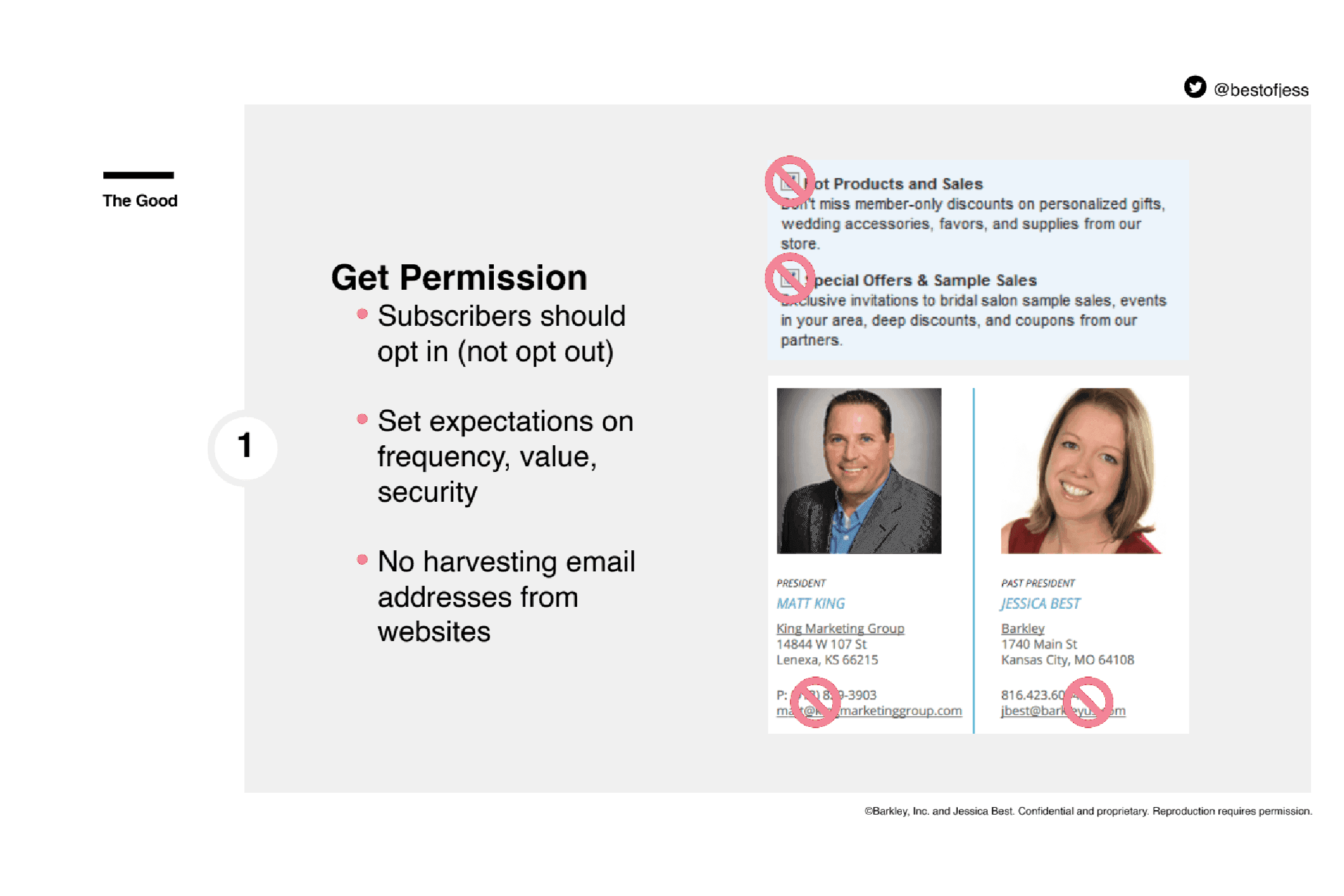 So leverage the best practices when asking for permission and set expectations on the frequency of communication. Don't leave them surprised by a daily newsletter - this action could leave you in the spam folder or even blocked forever.