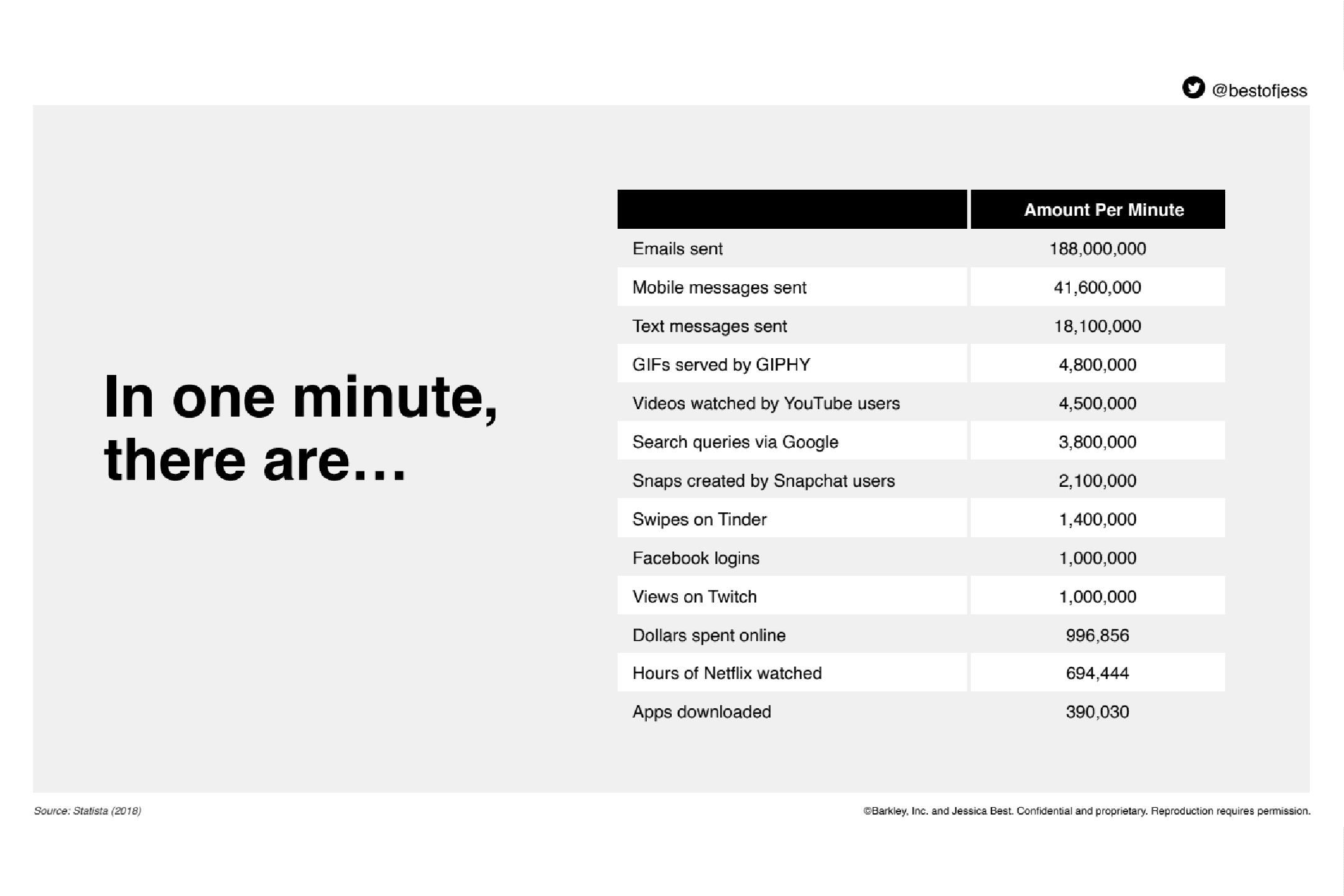 In just one minute, there is an increasing amount of 22% of emails sent compared to mobile text messages and a 2% increase of search queries for the top search engine in the world, Google.