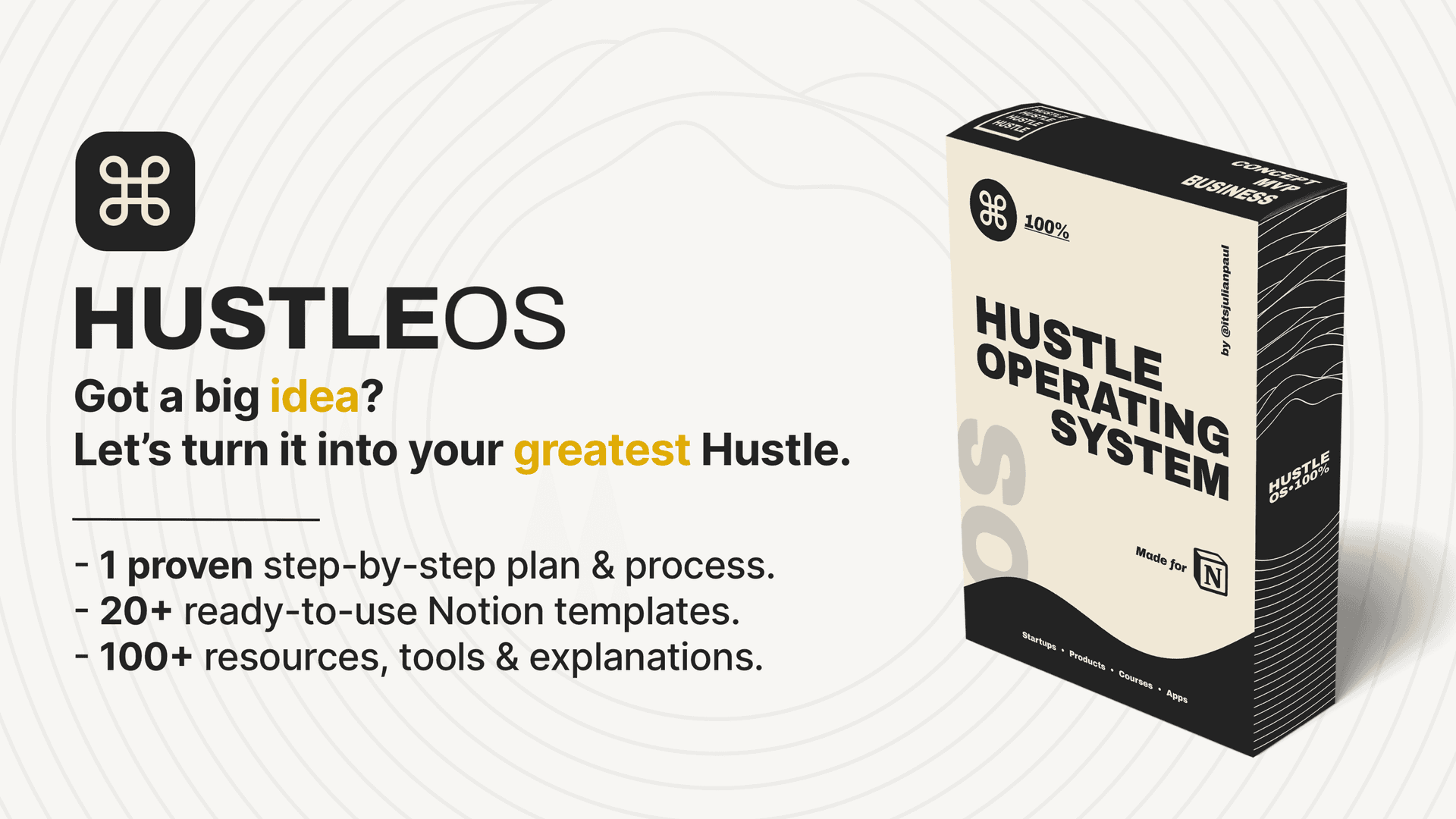 Julian’s work does not stop at HUSTLE OS - he is, as you read this, in the process of creating more products. He just launched worthy.domains, a system that helps you find a domain worthy of your next big idea, and usecase.tools, a platform where you can find a growing database of tools and their USECASES; its motto being: “find your product-fit in seconds, not hours.”