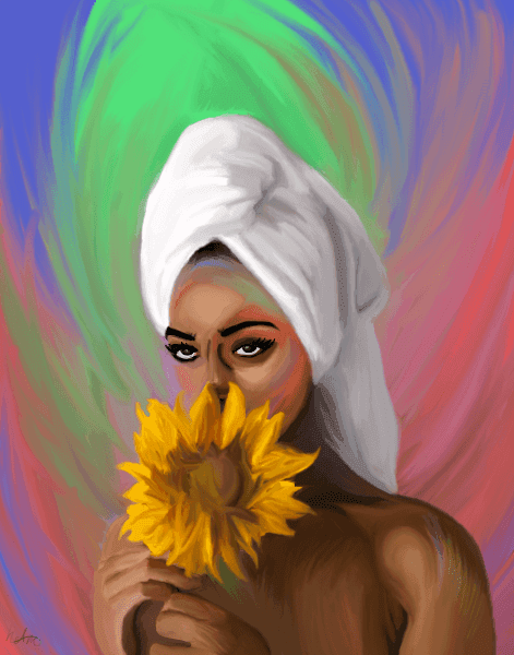 “Haha, no that’s not me. Usually for my digital work, I get a photo reference and, I mean, I don’t even get to choose my colors - these are just things that come up in the moment, depending on what I’m feeling. This one is close to me because it really is tied to growth - no matter the weather, no matter the circumstances.”