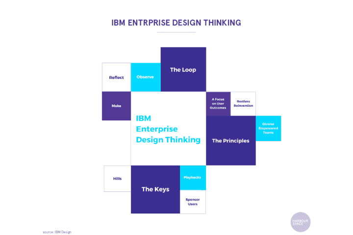 - IBM: this one is meant for enterprise and large scale companies. This model relies on a deep understanding of consumers with a huge emphasis on empathy. It relies on speed and scalability. Below are the element of the IBM design model.