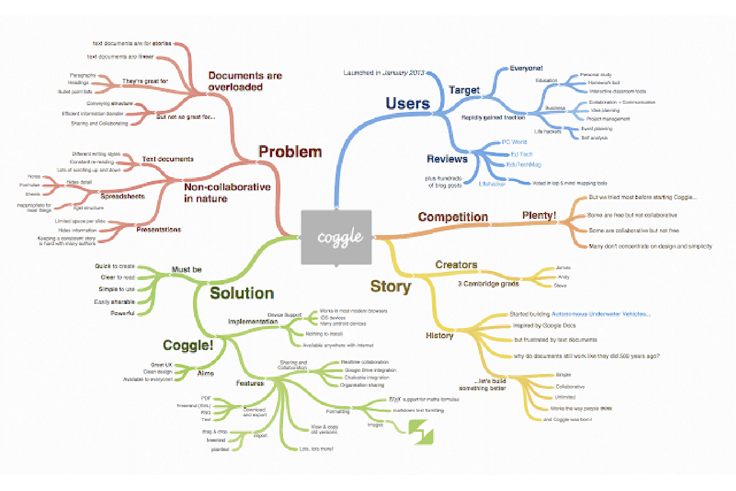 Coggle is a collaborative mind map and flow chart tool. It’s a great tool for sharing complex information in a clear way. Coggle has pricing plans starting with a free option for unlimited public diagrams.