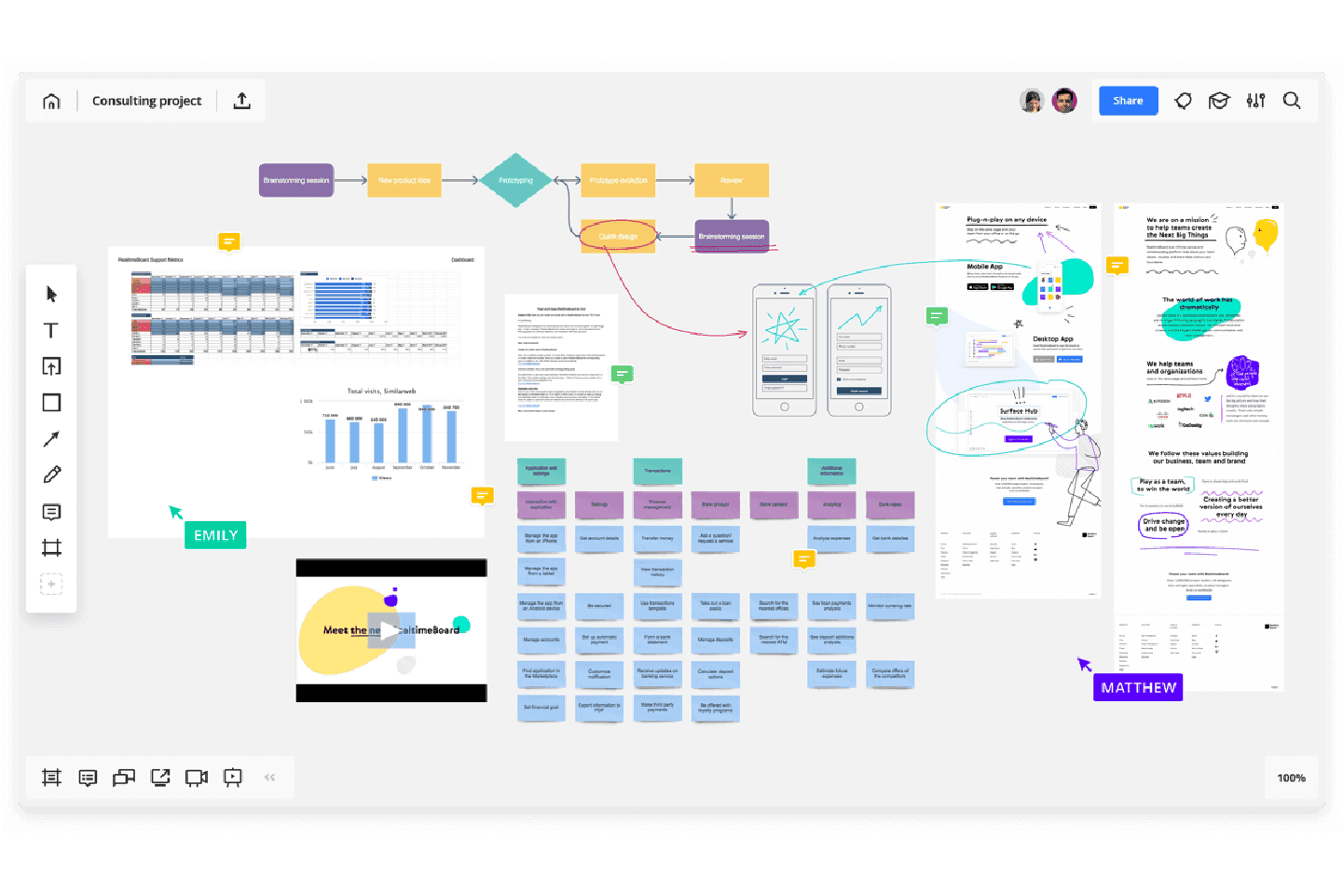 Miro is a real-time whiteboard for visual collaboration. This tool is popular among remote workers. It helps bring teams together for ultimate collaboration from anywhere. They have a free version with an unlimited number of collaborators with plenty of features, but the free version has a limit in the number of projects though. It still remains a great tool to start with.